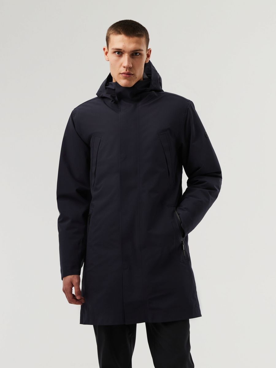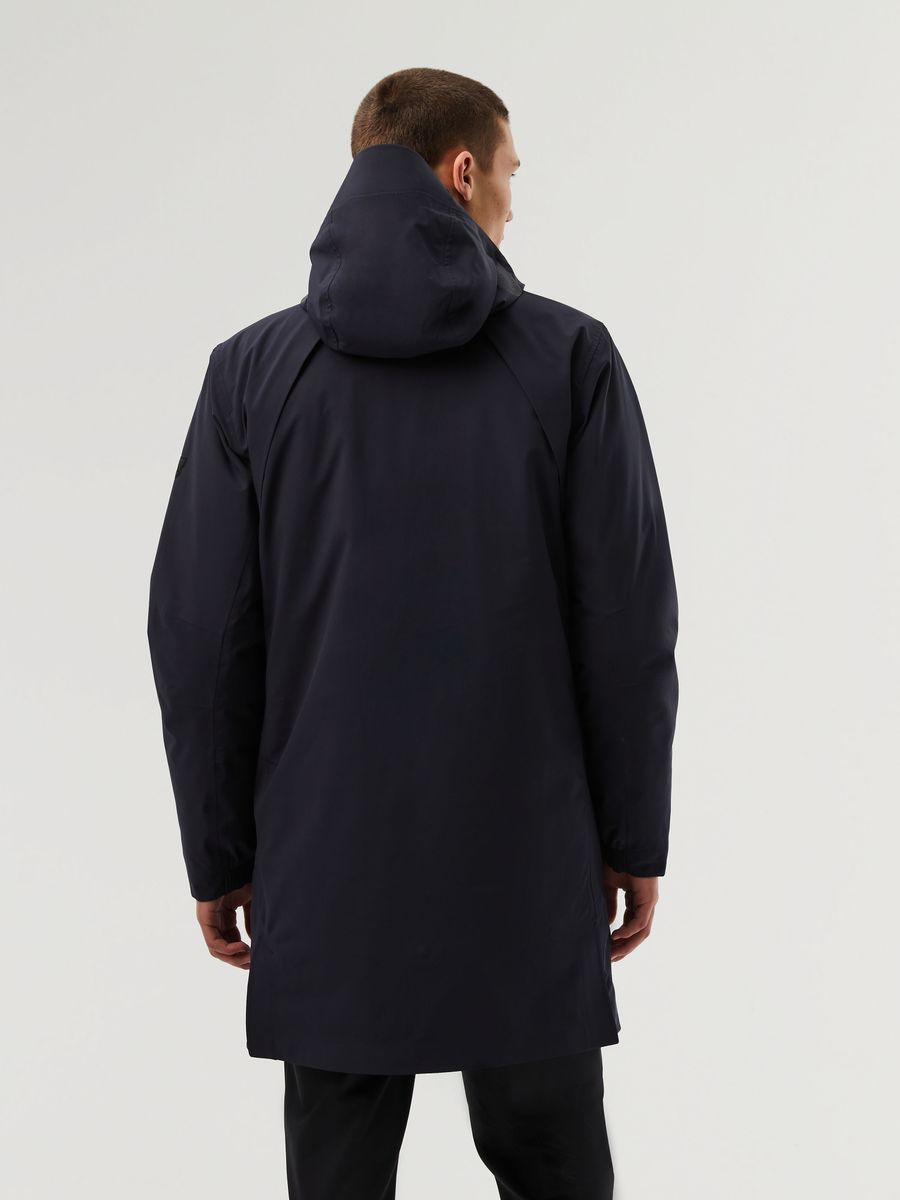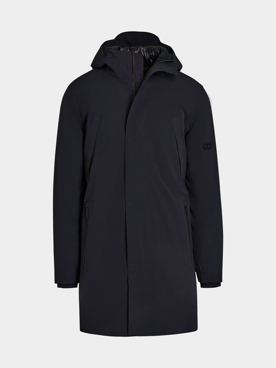 AlphaTauri ikonischer Taurobran®-Parka, wasserdicht mit einer Wassersäule von 5.000 mm, mit PrimaLoft®-Füllung, unsichtbares Packsystem mit integriertem Reisegriff, vollständig versiegelte Nähte, Audioverbesserungsfunktion dank lasergeschnittener Perforationen an der verstellbaren, gepolsterten Kapuze, Logo-Print auf der Rückseite der Kapuze, integrierte Beanie-Passform, wasserdichter Zwei-Wege-Reißverschluss, Reißverschlusszug mit AlphaTauri-Logo, AlphaTauri-Schriftzug auf der Reißverschlusslasche, magnetische Schnellverschlussknöpfe, zwei magnetische Schnellverschluss-Brusttaschen, zwei Fronttaschen mit Reißverschluss, beweglicher Sitz im hinteren Schulterbereich, selbst elastische Ärmelbündchen, Innenjersey an den Waden als Windschutz, AlphaTauri-Markenband auf der Innenseite, AlphaTauri-Logo-Patch auf dem linken Ärmel.