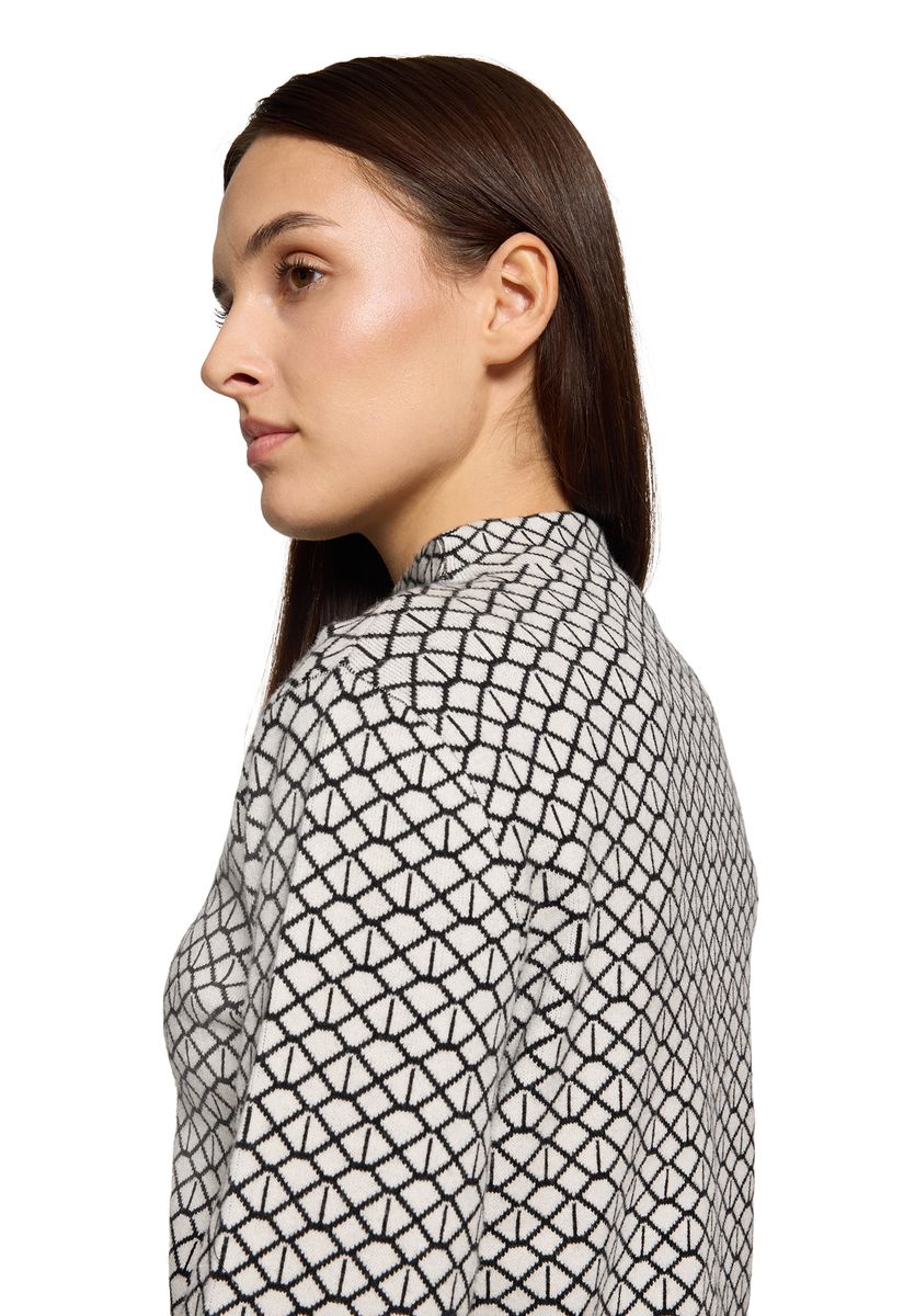 Dieser gerade geschnittene Strickpullover von Betty & Co überzeugt mit seinem grafischen Muster und dem modernen Stehkragen. Ein stilvolles Basic, das Komfort und Design perfekt vereint – ideal für elegante und lässige Outfits.
