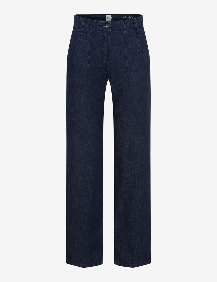 Sommerlicher Denim-Look: Die Culotte im Style Maine S setzt smarte Akzente in Ihrem Outfit und begeistert mit Leichtigkeit. Feminin und entspannt definiert sich die Damenjeans über die großzügige Silhouette des Wide Legs mit normaler Leibhöhe und einer modisch verkürzten Schrittlänge. Dezent integrierte französische Taschen und Leistentaschen runden das Design stilsicher ab. Die lässige Optik der Damenhose wird über markante Teilungsnähte in Front und leichte Used-Effekte erzielt, die den authentischen Jeans-Charakter unterstreichen. Für das herausragende Tragegefühl ist ein hochwertiger Baumwollmix verantwortlich, der die Natürlichkeit von Baumwolle mit den formbeständigen und elastischen Eigenschaften moderner Funktionsfasern verbindet. Als Ultralight-Qualität begeistert der Denim durch sein besonders geringes Gewicht – perfekt für für die warme Jahreszeit. Ergänzt wird dieser Komfort durch die innovative Coolmax-Technologie, die atmungsaktiv wirkt, Feuchtigkeit vom Körper wegtransportiert und einen angenehm kühlenden Effekt auf der Haut hinterlässt. Diese innovative Hose vereint somit ein leichtes Tragegefühl mit angesagtem Design.