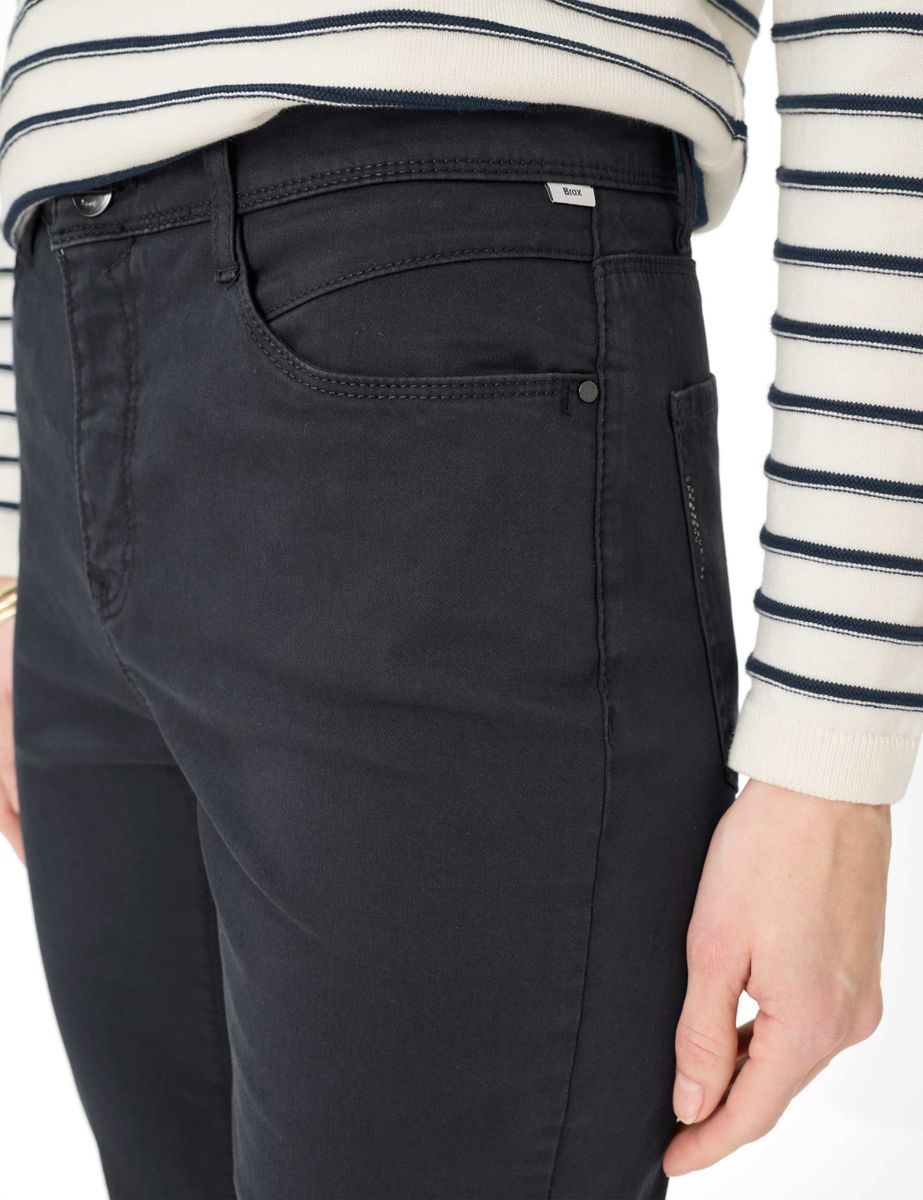 Mit ihrem klaren, modernen Auftreten zeigt sich die Five-Pocket-Hose im Style MARY als feminine Wahl für einen vielseitigen Alltag. Die gerade Form im Regular Fit sorgt für eine ausgewogene Linie, die schmeichelhaft wirkt und genügend Bewegungsfreiheit bietet. Typische Elemente der Five-Pocket-Gestaltung – Einschubtaschen, eine kleine Coinpocket sowie aufgesetzte Gesäßtaschen – verleihen der Hose ihren charakteristischen Look. Fein platzierte Strasselemente bereichern die cleane Optik mit eleganter Note. Edel wird es auch beim Material. Die Superior Cotton-Qualität verleiht der Hose einen feinen Glanz und eine geschmeidige Haptik. Der hochwertige Baumwoll-Mix sorgt für ein angenehm weiches Hautgefühl. Ergänzt durch Lyocell und Elasthan, bietet die farbbrillante Satin Atmungsaktivität, Formbeständigkeit und exzellente Bewegungsfreiheit – für unbeschwertes Wohlbefinden den ganzen Tag.