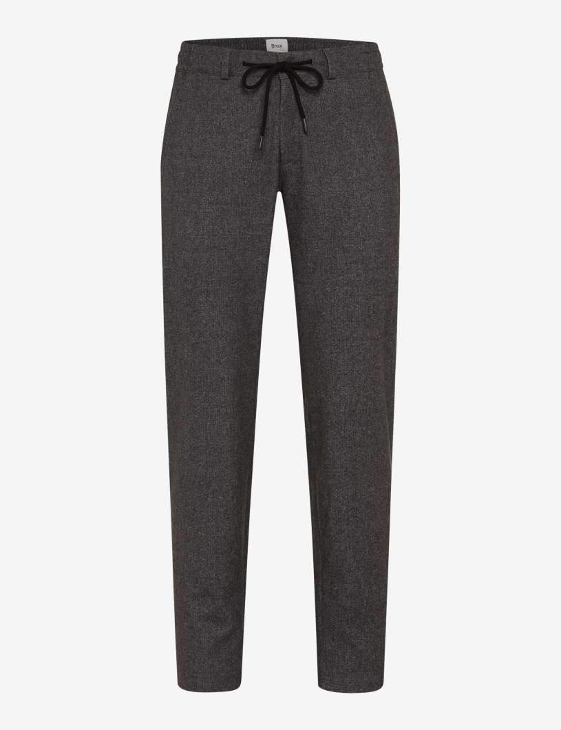 Lässig im Look, flexibel im Komfort – die Jogpants im Style PHIL vereint moderne Sportlichkeit mit modischem Anspruch. Mit ihrem geraden Beinverlauf im Tapered Fit und der normalen Leibhöhe sorgt die Hose für eine gepflegte, aber entspannte Silhouette. Typisch für diese Form zeigen sich die klassischen Flatfront-Details, ergänzt durch einen verdeckten Reißverschluss und eine verstellbare Kordel. Tragen Sie die Kordel sichtbar außen am Bund und verleihen Ihrem Look mehr Sportivität oder ziehen Sie sie an die Innenseite für eine cleanere Ausstrahlung. Seitliche Leistentaschen unterstreichen die klare Linie. Der dezente Minimalprint belebt die Herrenhose mit einem zurückhaltenden Musterbild, das vielseitig kombinierbar bleibt. Für den herbstlichen Touch ist die charakteristische Flanell-Optik verantwortlich. Aus innovativem Jersey gefertigt, zeigt sich die Chino in einer Hi-Flex-Qualität, die maximale Bewegungsfreiheit mit dauerhaftem Tragekomfort verbindet. Der funktionale Polyester-Viskose-Mix sorgt dabei für Formbeständigkeit und Strapazierfähigkeit, während der Elastananteil zusätzlichen Stretch ermöglicht .