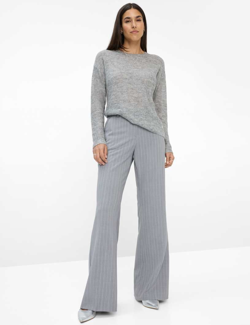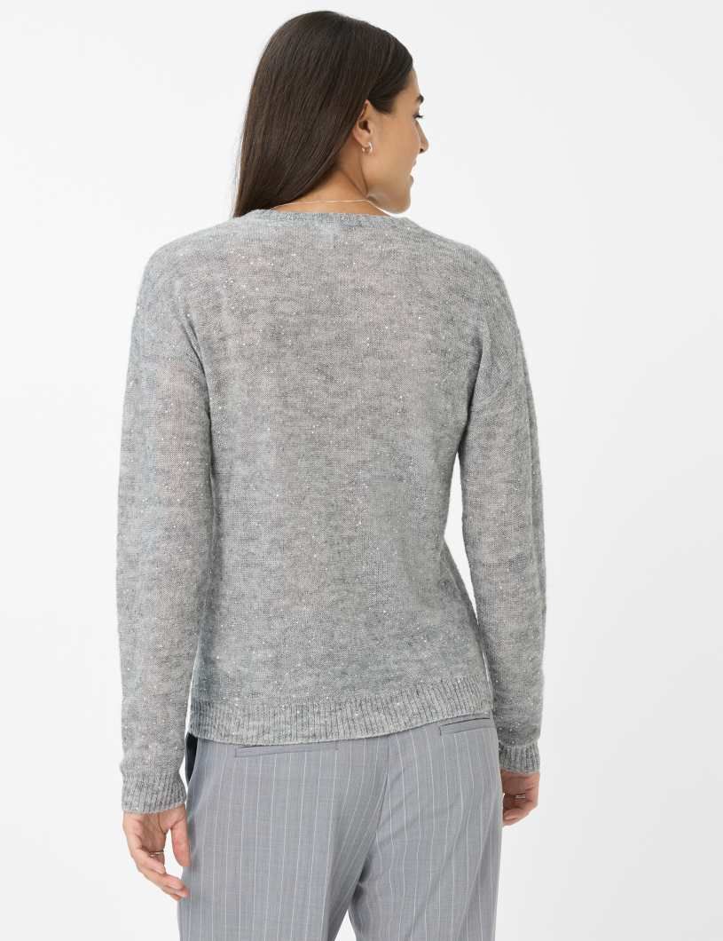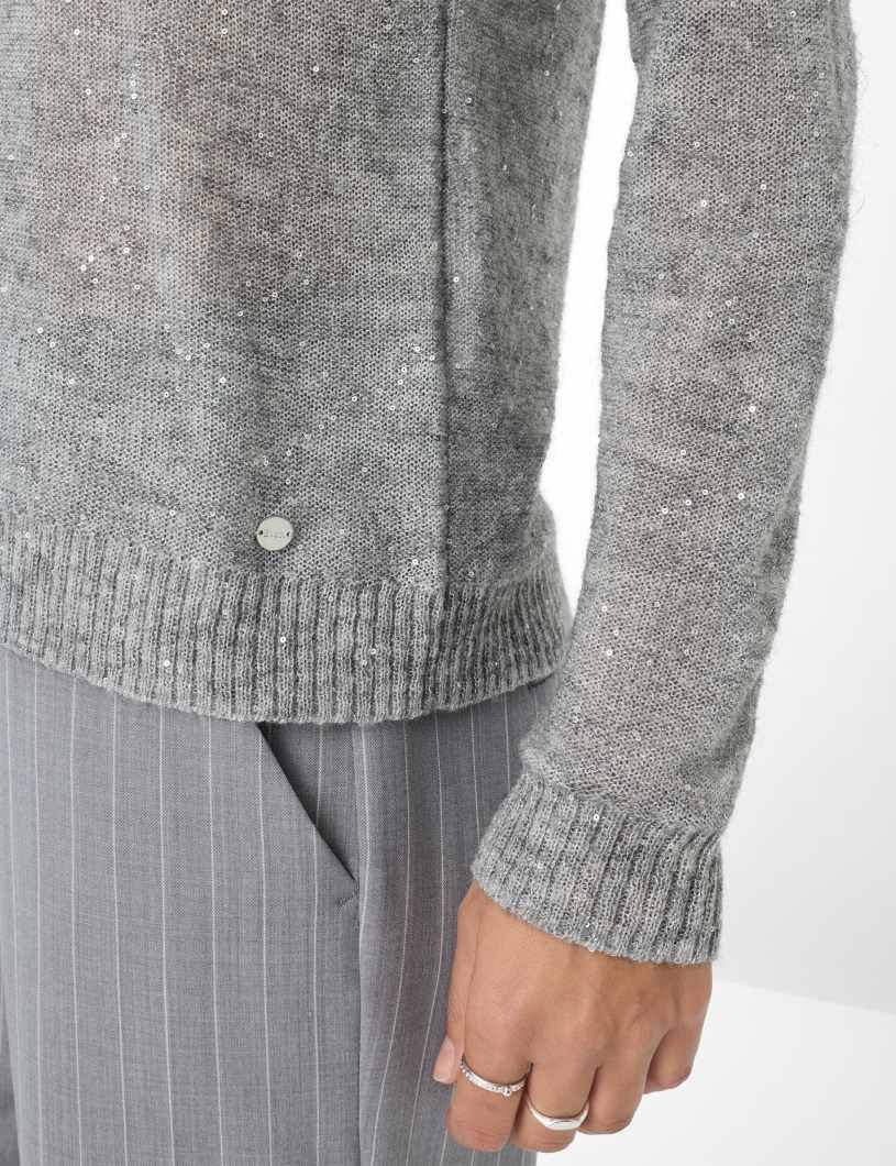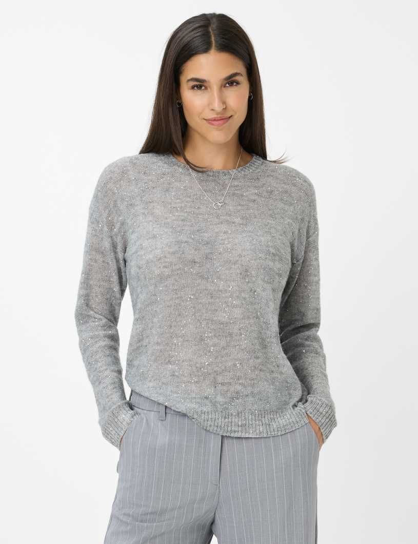 Der Pullover STYLE LESLEY überzeugt mit einer lässig-femininen Ausstrahlung und subtiler Raffinesse. Die gerade Silhouette mit klassischem Rundhalsausschnitt und modisch überschnittenen Schultern verleiht dem Look eine entspannte Leichtigkeit. Das feine Maschenbild in lebendiger Melange-Optik sorgt für visuelle Tiefe und unterstreicht den weichen, wolligen Charakter. Dezente Glanzpartikel setzen elegante Akzente und verleihen dem Strickmodell einen Hauch von Glamour – perfekt für stilvolle Everyday-Looks mit besonderem Twist. Der softe Griff und die flauschige Haptik kommt dank der hochwertigen Materialkomposition: Der Pullover besteht aus Wolle, Polyamid, Polyester und Alpakawolle. Die Wolle sorgt für natürliche Wärme, während der Alpakaanteil eine luxuriös softe Textur beisteuert. Synthetische Fasern wie Polyamid und Polyester verleihen dem Modell Formstabilität, Strapazierfähigkeit und ein angenehm leichtes Tragegefühl. Gefertigt ist der Pullover in Single-Jersey-Strick, der für seine geschmeidige Oberfläche, hohe Elastizität und angenehme Leichtigkeit bekannt ist.