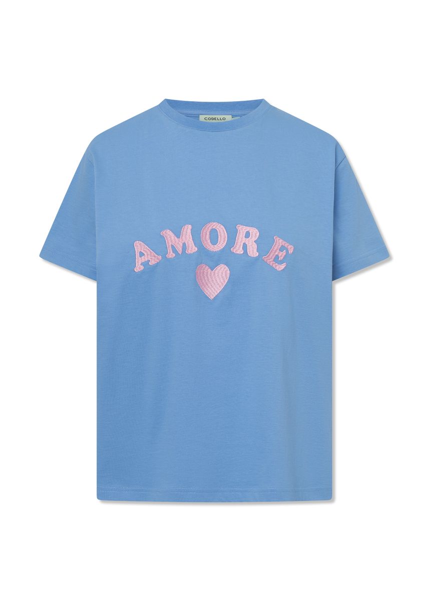 - Auffällige AMORE‑Stickerei mit Herzmotiv