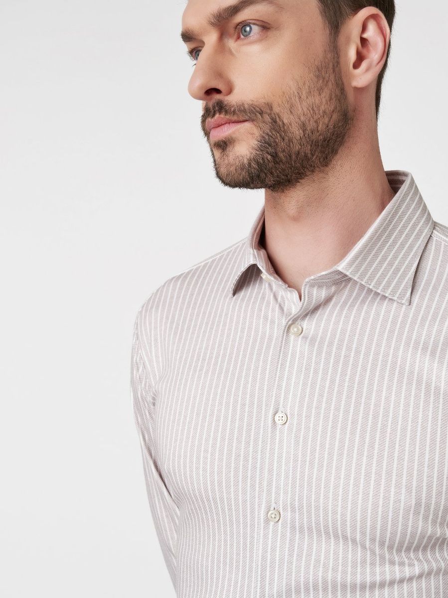 - Muster: Feine vertikale Streifen in Beige-Weiß
