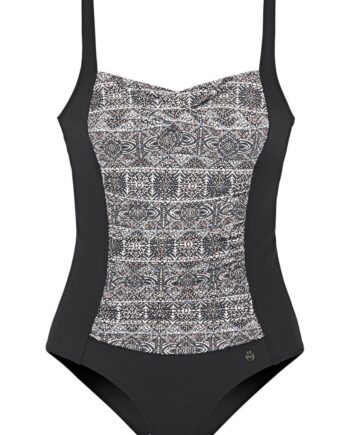 Bügel-Bandeaubikini von Venice Beach mit Alloverprint und Häkelkante. Wattierte Cups mit herausnehmbaren Kissen. Abnehmbare Träger. Klassisch geschnittene Bikinihose. Elastisches Material.