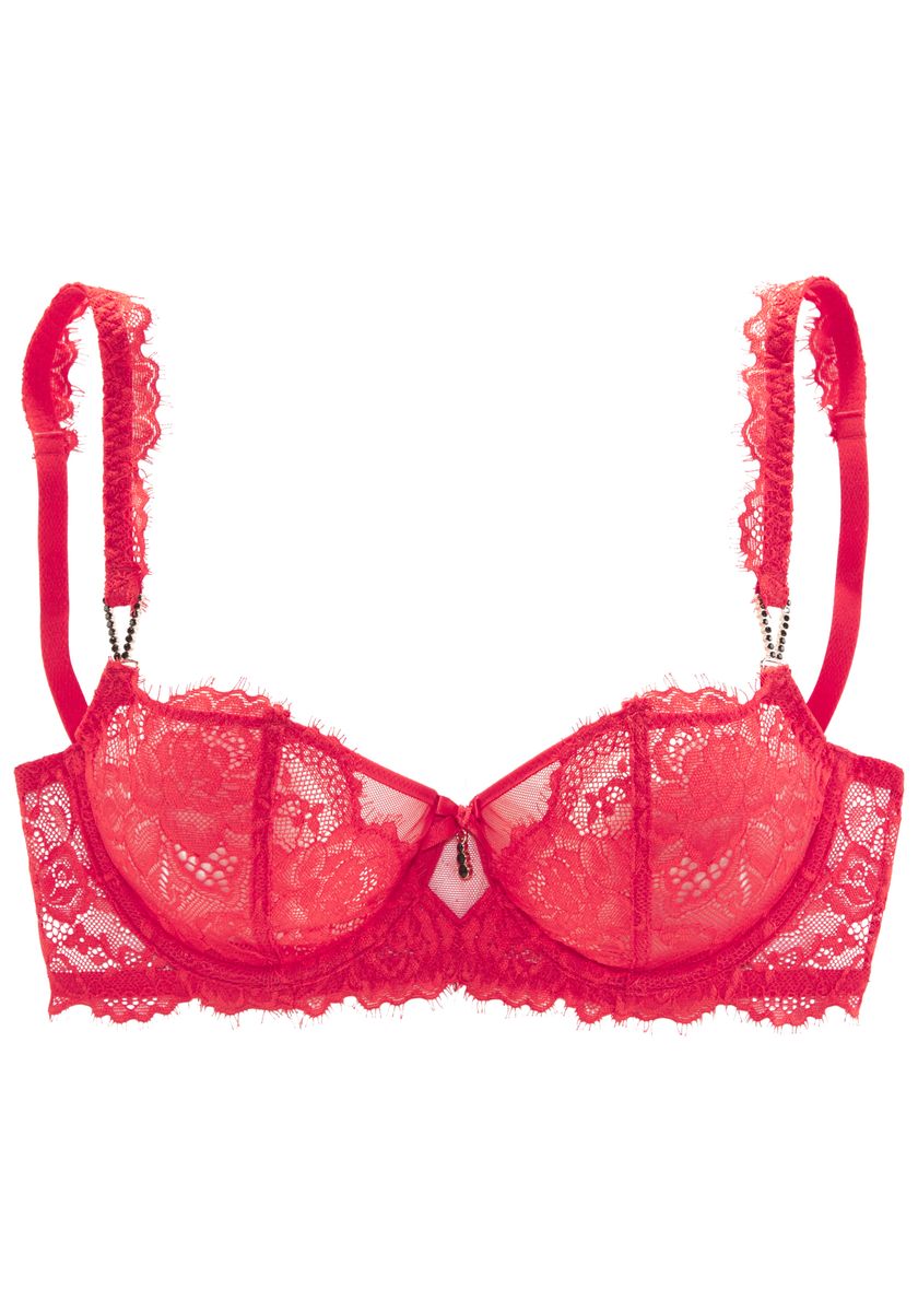 Verführerischer Balconnet-Bügel-BH (ohne Wattierung) mit extravaganten Schmuckaccessoires und Spitzenträgern. Aus edler, floraler Spitze in transparenter Optik. Wunderschöne Rückenpartie mit hübschem Bänder-Detail. Individuell verstellbare Träger sowie Rückenverschluss. Mit Liebe & Leidenschaft in Hamburg kreiert. Obermaterial: 91% Polyamid, 9% Elasthan.