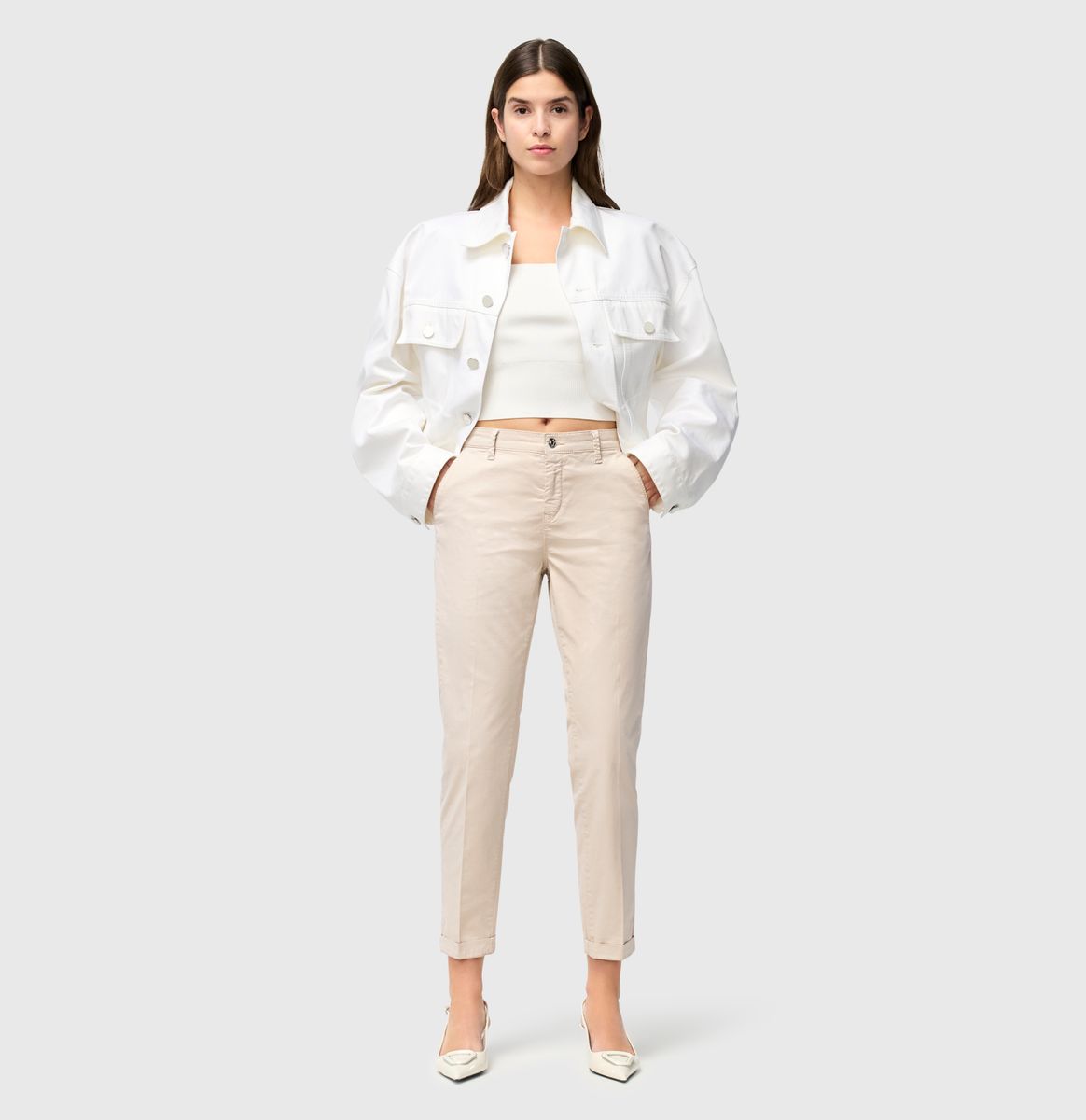 - Länge: Gekrempelter Saum für einen modernen Look