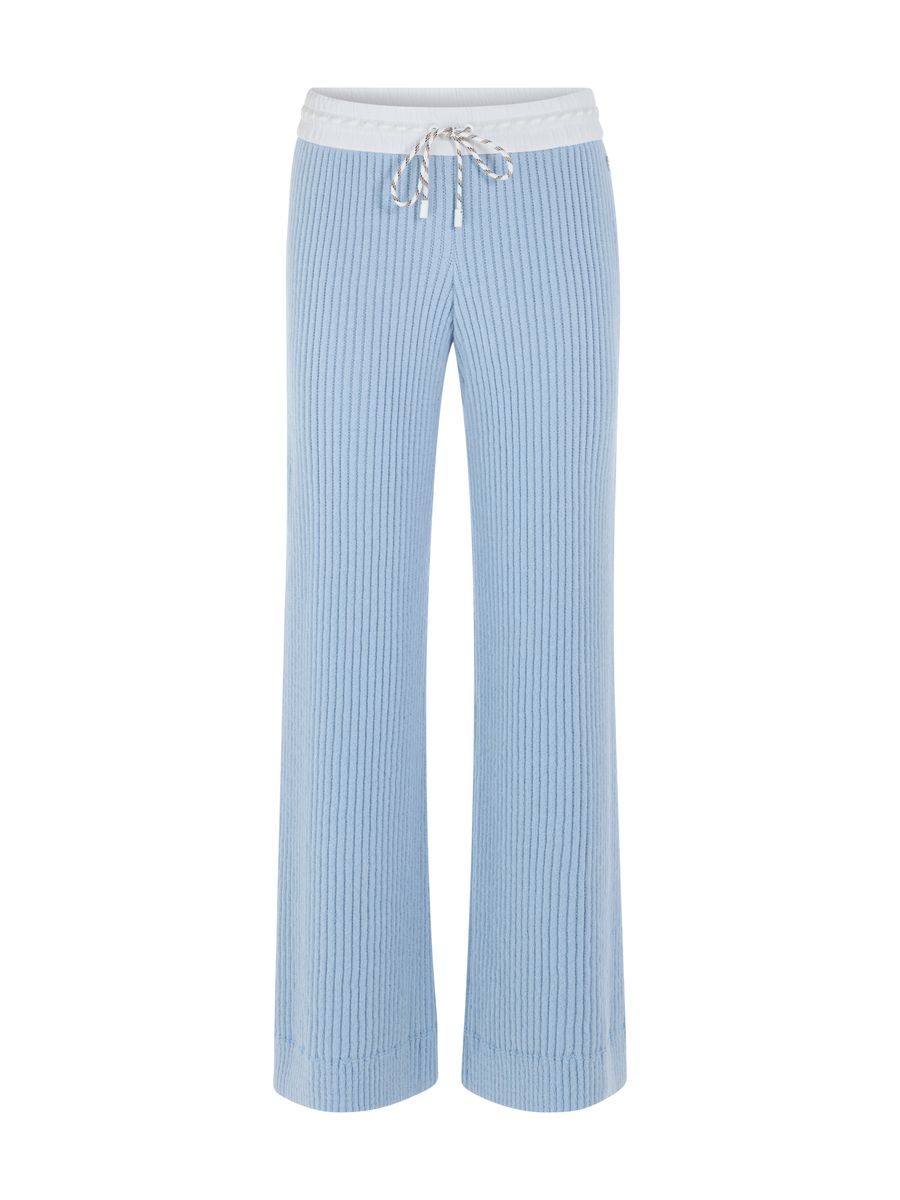 Die Hose WELKOM aus softem Baumwollmix bietet dank weichem Rippstrick maximalen Komfort. Ihr Wide Fit und der High-Waist-Schnitt formen eine moderne Silhouette. Der sportive, elastische Bund mit Kordel sorgt für perfekten Sitz. In modischer 7/8-Länge ist sie ideal für entspannte Alltagslooks. Das Modell ist "Knitted in Germany": Das Verstricken der Garne auf hochmodernen Strickmaschinen und die Veredelung der Stoffe geschehen am Standort Deutschland.