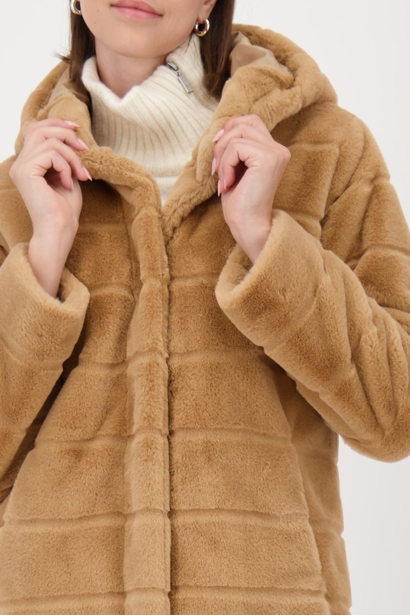 Dieser stilvolle Mantel von Monari begeistert mit seiner flauschigen Kunstfell-Optik und bietet kuschelige Wärme an kalten Tagen. Die Kapuze und die praktischen Eingrifftaschen machen ihn zu einem komfortablen Allrounder, der gleichzeitig ein modisches Statement setzt.