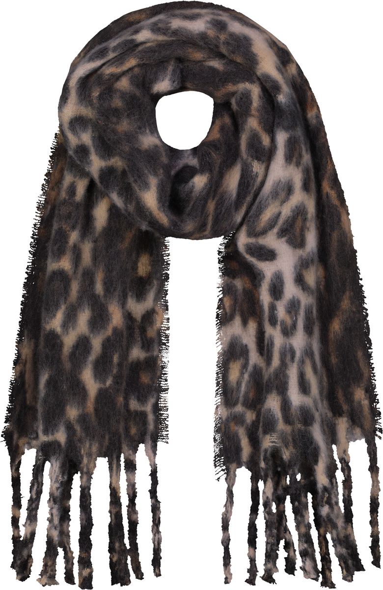 Dieser flauschige Schal mit fransigen Enden und Leomuster bietet nicht nur einen hohen Tragekomfort, sondern auch einen trendigen Look.