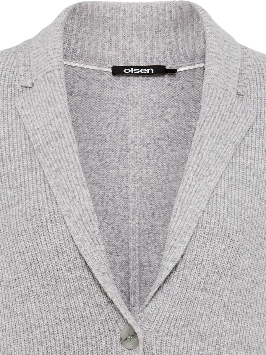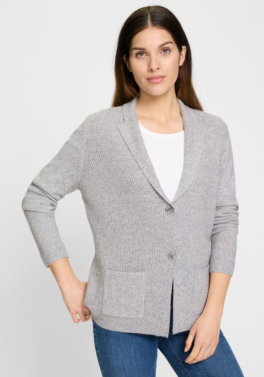 Dieser elegante Cardigan im Blazer-Stil vereint Komfort und Stil. Schmal geschnitten, bietet er eine taillierte Silhouette, die perfekt zu einer femininen Figur passt. Der Cardigan ist mit einem Reverskragen, langen Ärmeln und zwei aufgesetzten Taschen ausgestattet. Der gerade Abschluss sorgt für eine klare Linie und einen modernen Look. Der Zwei-Knopfverschluss ergänzt das elegante Design. Der Cardigan besteht aus einem hochwertigen Muster und Materialmix, der sowohl für eine weiche Haptik als auch für Formbeständigkeit sorgt. Bonus: Dieser Style enthält LENZING™ ECOVERO™ Viskose, die aus kontrollierten Holzquellen gewonnen wird. LENZING™ und ECOVERO™ sind Marken der Lenzing AG. Länge ca. 60 cm.