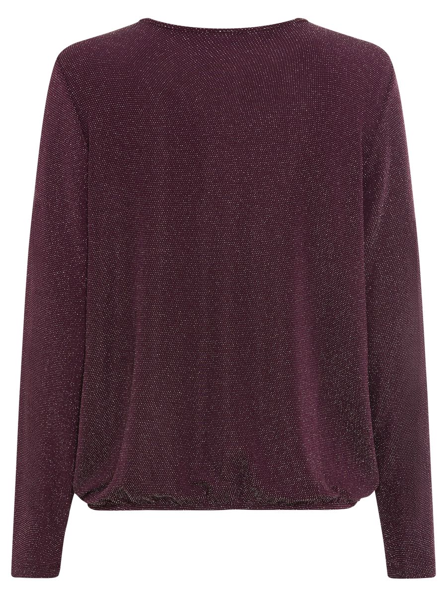 Dieses etwas weiter geschnittene Shirt mit langen Ärmeln begeistert durch seinen glamourösen Glitzereffekt, der dem Look eine elegante Note verleiht. Der Tunika-Ausschnitt wird durch eine metallische, längliche Perle stilvoll akzentuiert – ein echter Hingucker für besondere Anlässe oder festliche Momente. Dank des komfortablen Schnitts trägt sich das Modell angenehm und lässt sich vielseitig kombinieren.