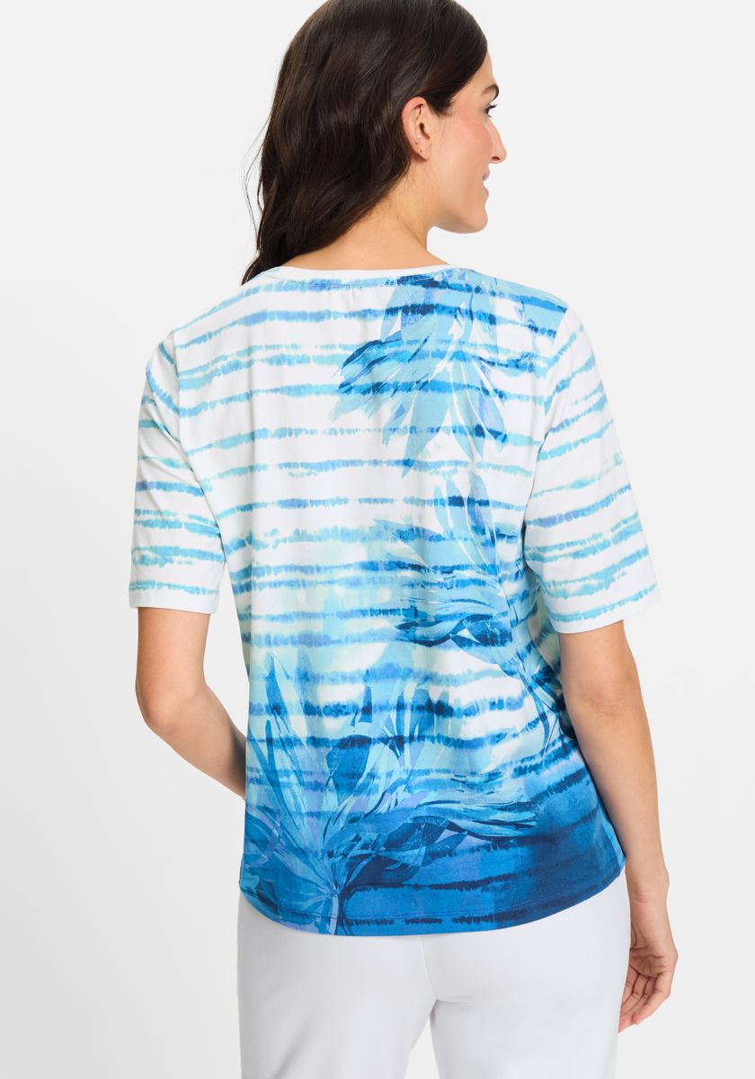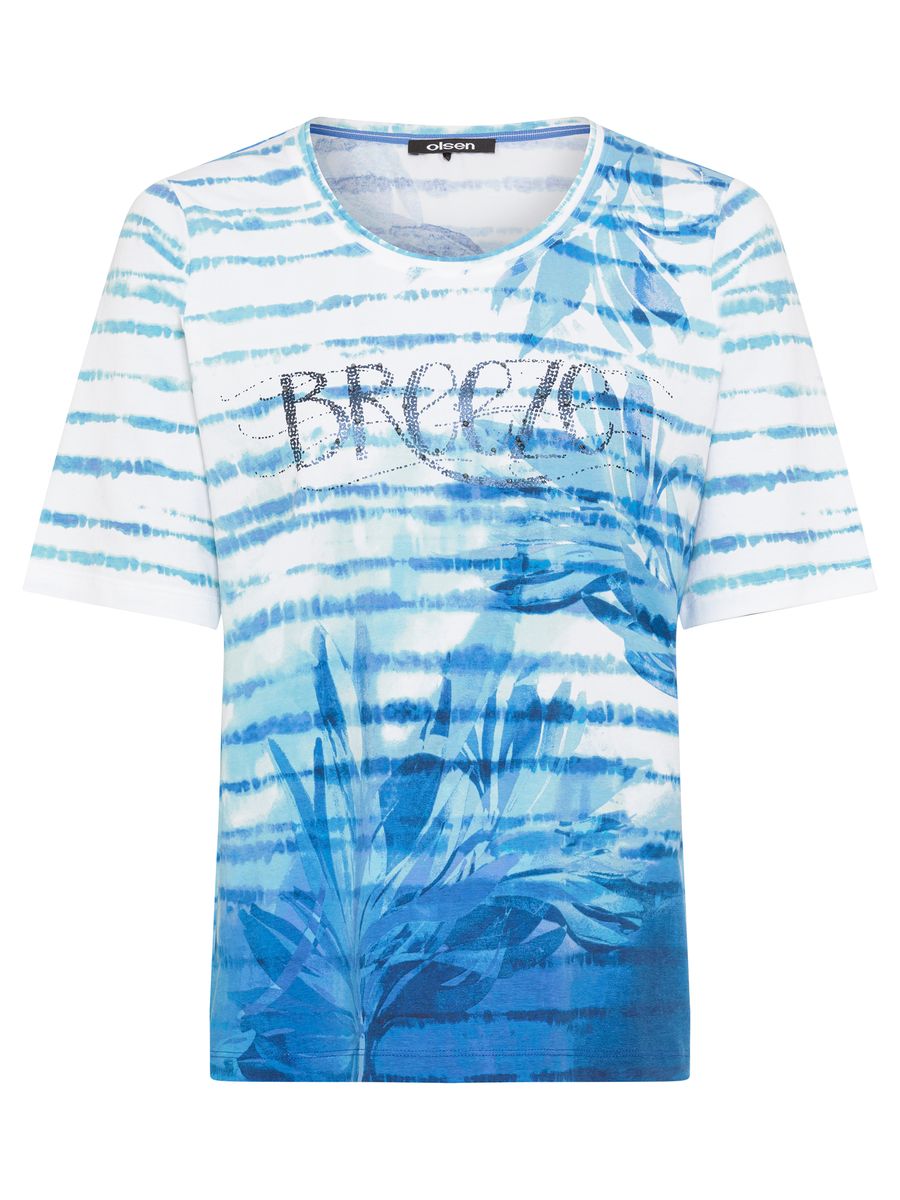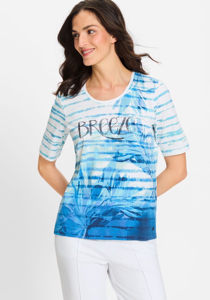 Dieses Shirt mit Rundhalsausschnitt kombiniert zeitloses Design mit raffinierten Details. Der gerade Schnitt bietet eine klassische Passform. Der Panneaux-Print zeigt ein Streifendessin in Batik-Optik und einen Breeze-Schriftzug, in dem dekorative Steine eingearbeitet sind. Hergestellt aus reiner Baumwolle bietet es nicht nur Tragekomfort, sondern ist auch atmungsaktiv.
