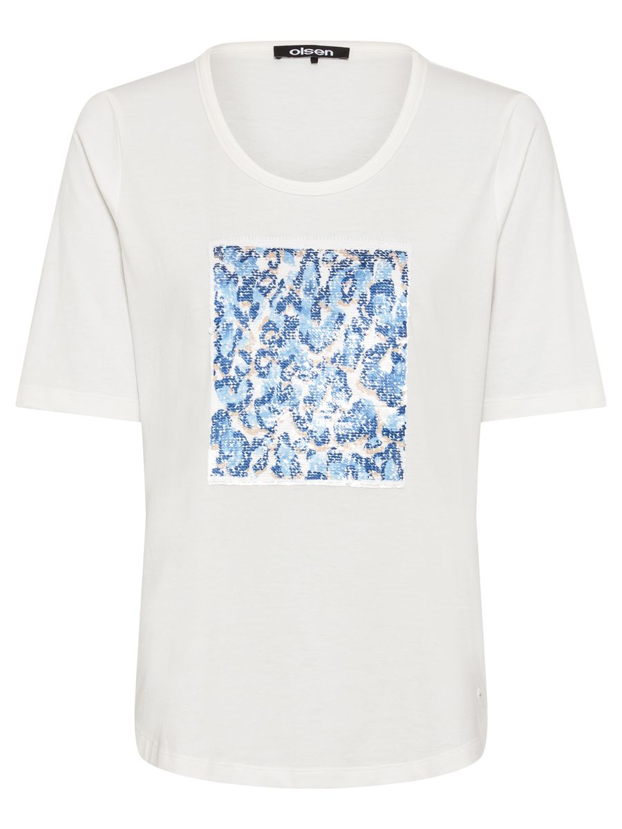 Dieses gerade geschnittene T-Shirt in der Olsen-Passform „Hannah“ wird durch die Paillettenverzierung vorne zu einem echten Blickfang. Mit kurzen Ärmeln, Rundhalsausschnitt und leicht abgerundetem Saum bietet es eine bequeme Passform und lässt sich vielseitig kombinieren. Ein modisches Highlight für jeden Tag. Länge: 62 cm.