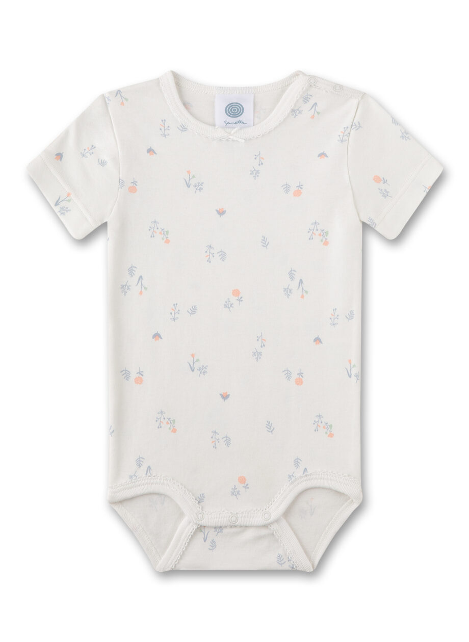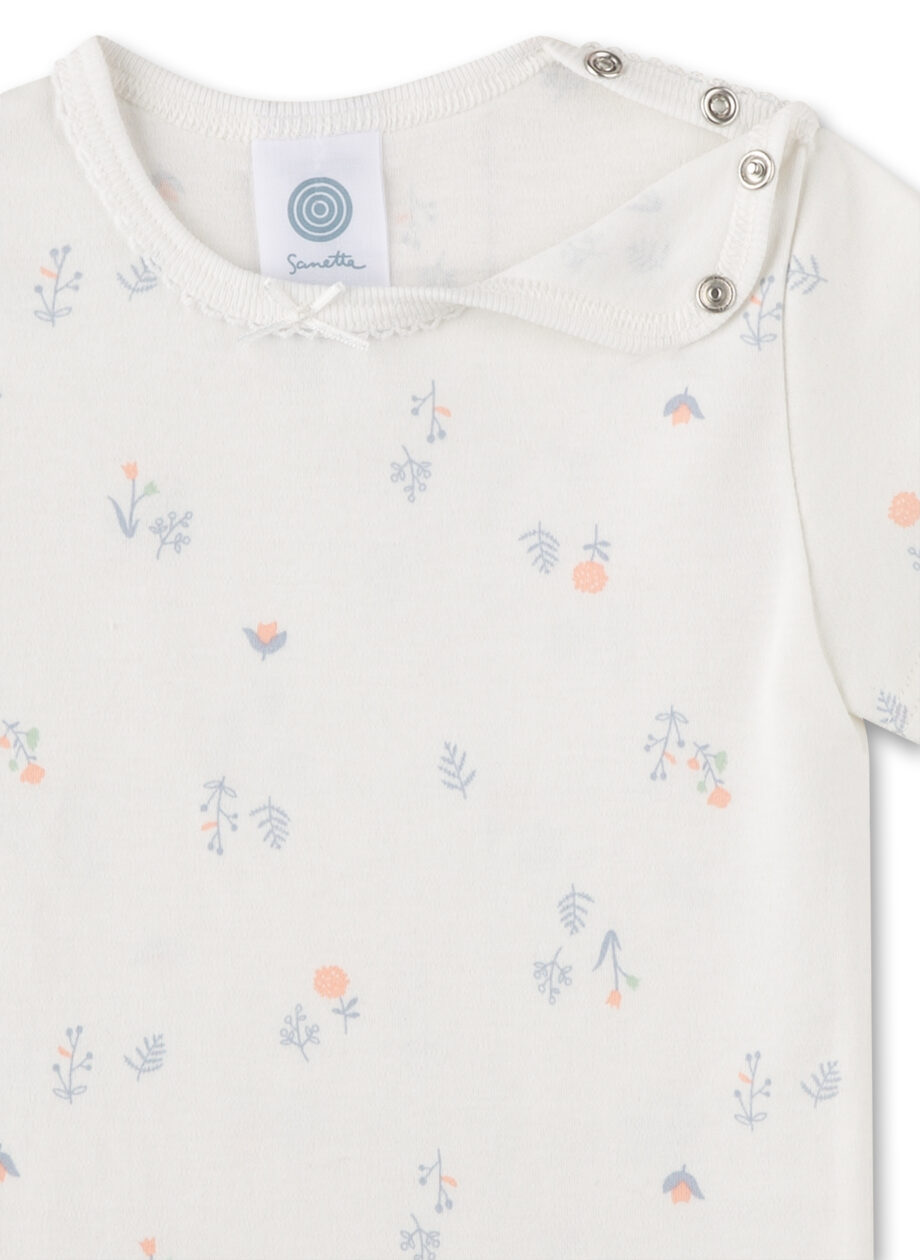 Kurzarm-Body von Sanetta mit zarten Blüten als zauberhafter Alloverprint.