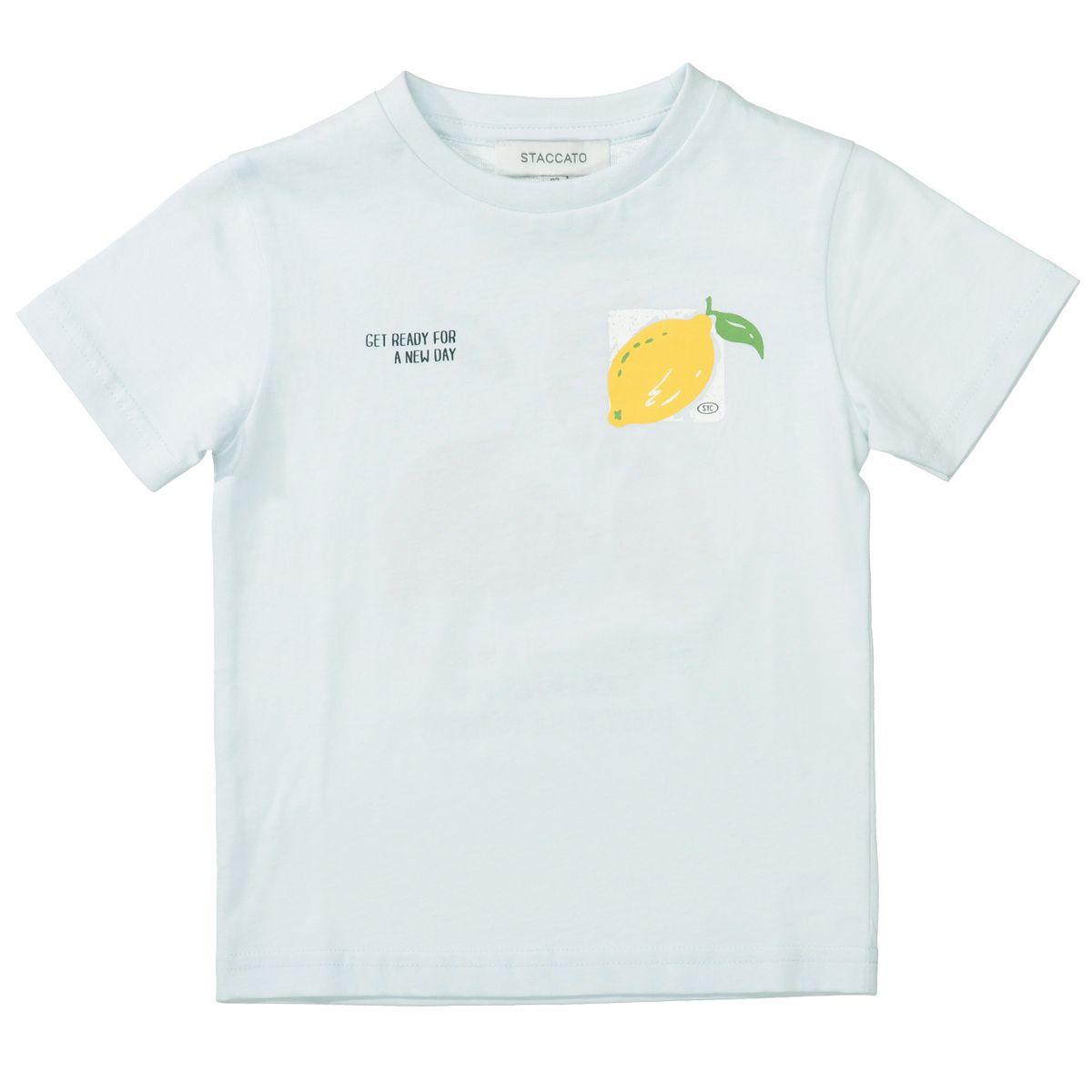 Dieses frische T‑Shirt von Staccato bringt mit seinem Zitronen‑Print jede Menge Sommerlaune in den Alltag. Der weiche Stoff sorgt für ein angenehm leichtes Tragegefühl, während der kleine Frontprint mit Zitrone und dem Schriftzug „GET READY FOR A NEW DAY“ einen coolen, motivierenden Akzent setzt. Auf der Rückseite überrascht ein großer Print, der den Look modern abrundet – ideal für warme Tage, Freizeit und kleine Abenteurer.
