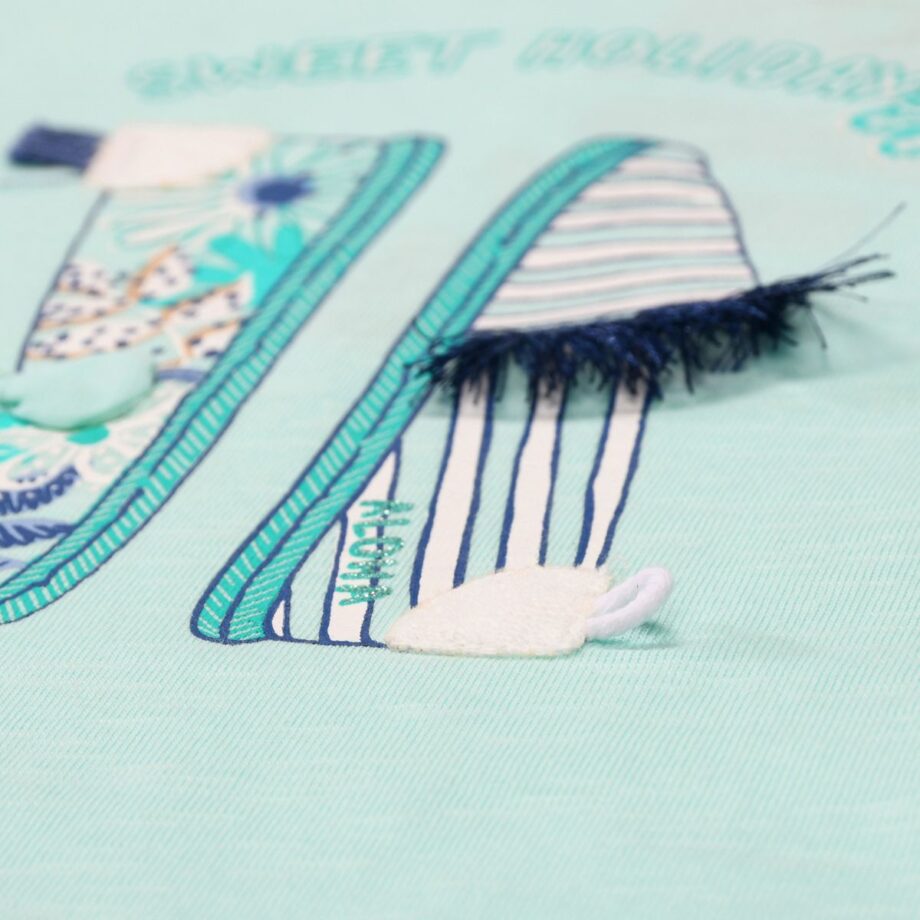 Dieses süße T-Shirt von STACCATO ist ein echtes Must-Have für den Sommer. Mit seinem fröhlichen Sommerprint und den verspielten Rüschen am Ärmel bringt es Leichtigkeit und gute Laune in die Garderobe.