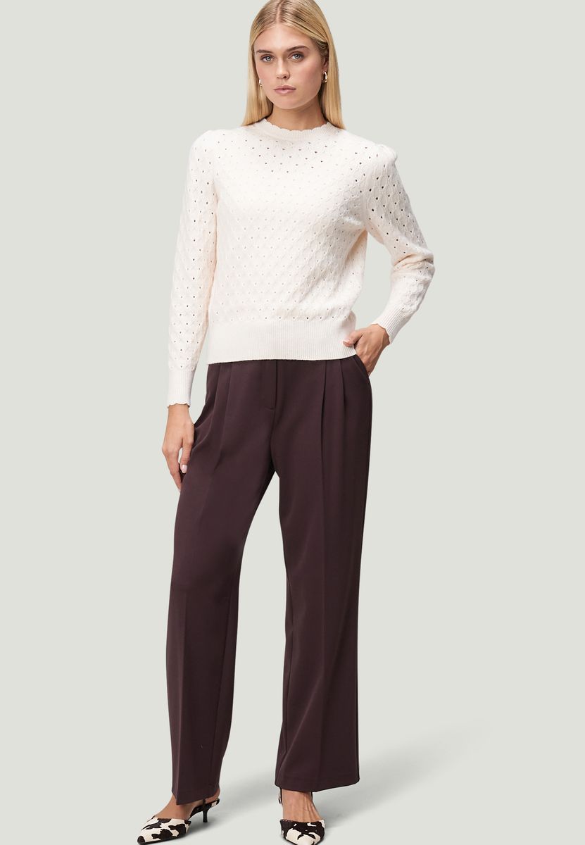 Der Zero Pullover überzeugt mit seinem femininen Lochstrickmuster und einem klassischen Rundhalsausschnitt. Die figurumspielende Passform sorgt für ein angenehmes Tragegefühl und macht ihn zu einem vielseitigen Allrounder für den Alltag. Durch die leichte Strickstruktur eignet sich der Pullover sowohl solo als auch in Kombination mit Bluse oder Shirt für einen modernen Layering-Look. Ein zeitloses Basic, das Komfort und Stil mühelos verbindet.